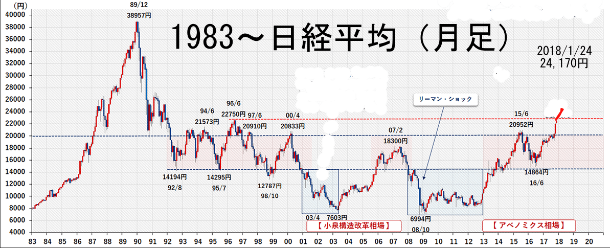 このチャートは、1983年からの、日経225平均株価の推移を表しています。 このチャートから、何を学ぶことが出来るか?ですが、、、、、、 まず、天井からの、下落率を観てみましょう! 1989年のバブル絶頂の […]